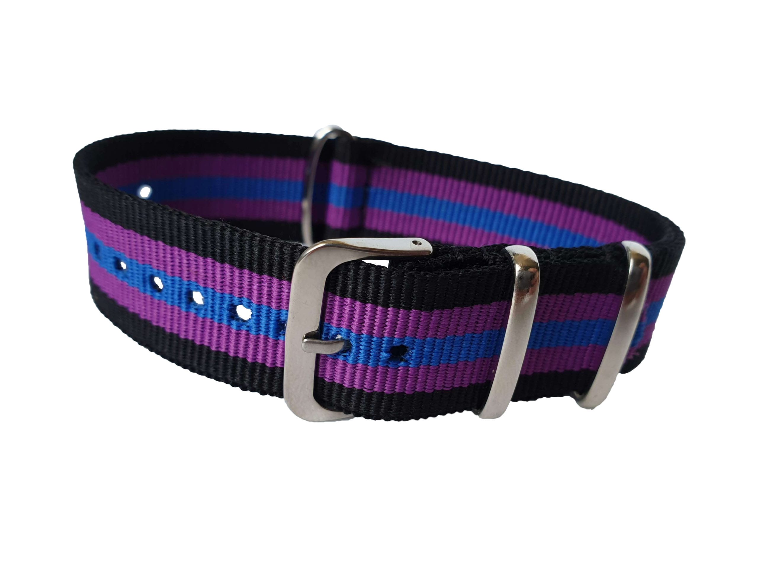 20mm Nato Watch Strap Black/Purple/Blue
