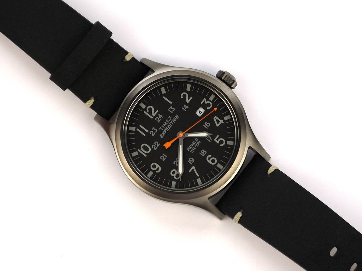 Sometimes you just need a trusted companion who’s up for anything. The Timex Expedition Scout Watch is a well-crafted update to the classic field watch with twelve or twenty-four hour time settings, date, and a distinct arrow second hand. Everything you need and nothing you don’t. Strap with buckle closure. Case Height: 11 mm. Lug Width: 20 mm. Case Width: 40 mm. Case Material: Brass. Crystal: Mineral glass. Full Arabic dial markings. Quartz analog watch movement.