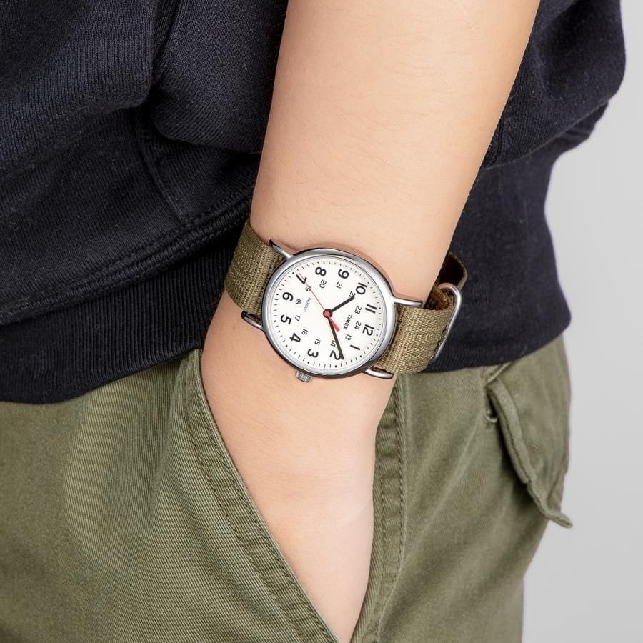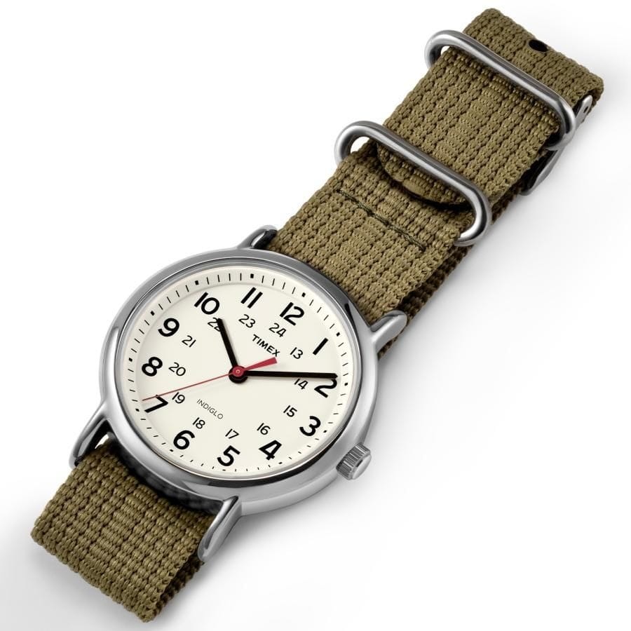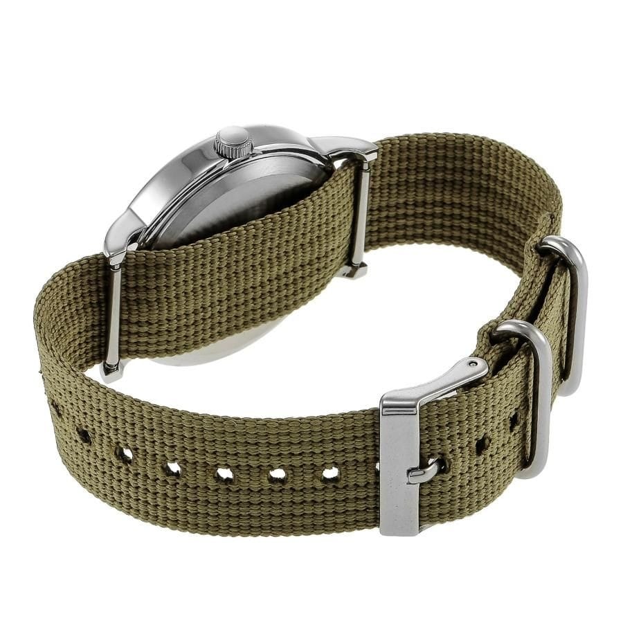 - Adjustable olive green 20 millimeter nylon slip-thru strap.